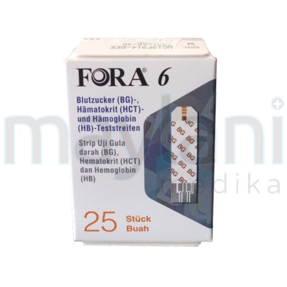 FORA 6 Plus 6in1 Strip Gula Darah (BG), Hematokrit (HCT), dan Hemoglobin (HB) merupakan strip isi ulang untuk alat test Fora 6 Plus. Strip ini memungkinkan pengukuran tiga parameter sekaligus dalam satu kali tes, dengan volume sampel darah yang sangat kecil dan hasil cepat. Cocok digunakan untuk pemantauan mandiri maupun klinis.